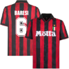 This is the official AC Milan retro football shirt 1993/94 by Score Draw. The back is provided with the print of Baresi (6). This AC Milan retro football shirt is based on the football shirt from the 1993-1994 season. Great classic Rossoneri retro football shirt and of course provided with the black and red vertical stripes. Very recognizable by the name of the then sponsor MOTTA on the middle of the chest. The left chest contains the Scudtto badge with a golden star above it. Furthermore, this AC Milan retro football shirt has a v-neck and a polo collar in black. Nice AC Milan retro shirt for the real Milan fan! Material: 100% recycled polyester.