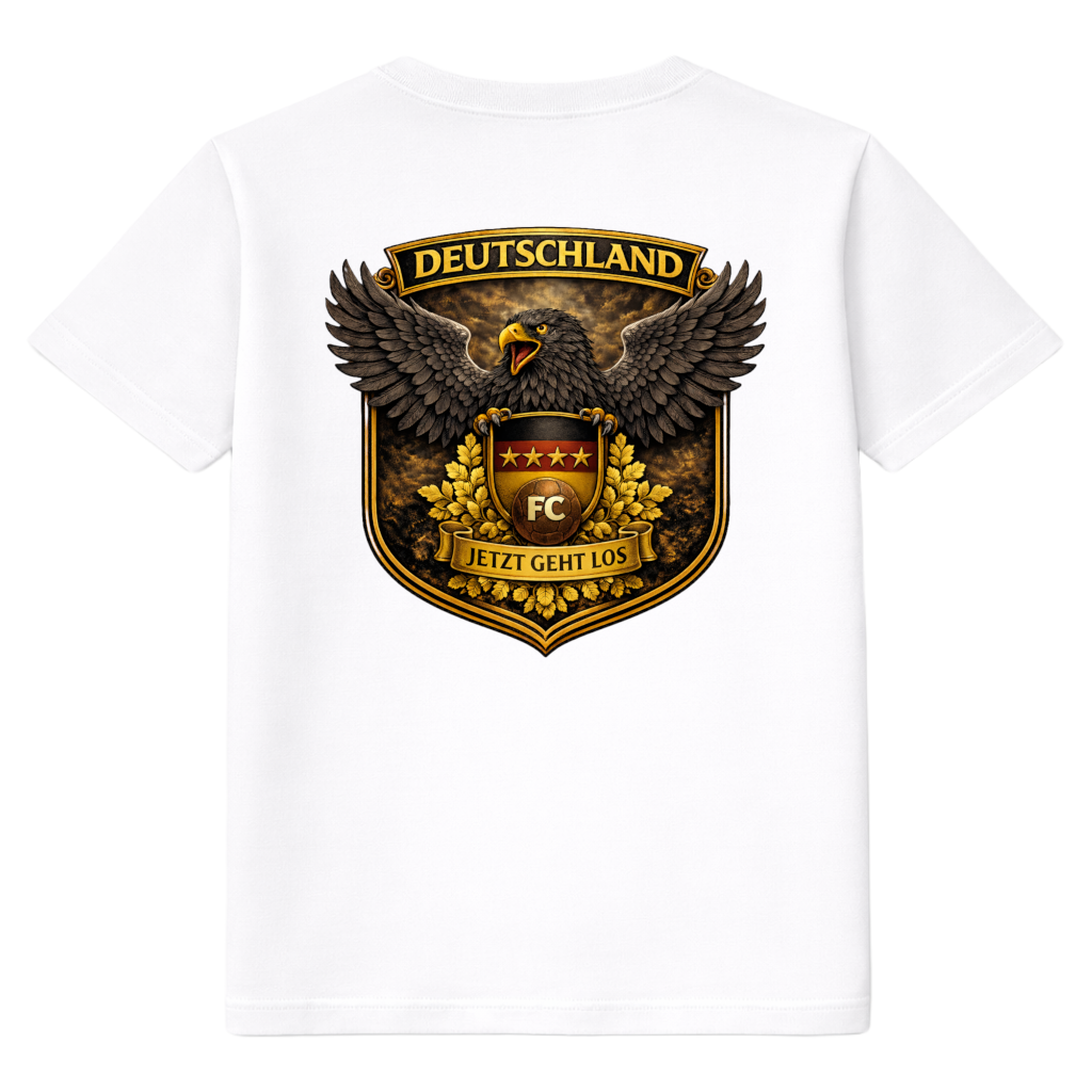 This FC ELEVEN Germany soccer T-shirt for adults is a real eye-catcher for every football fan. The heavy T-shirt is made from thick organic cotton and feels sturdy and comfortable. On the back, it features a striking and colorful graphic print of Germany, with the eagle from the German coat of arms at the center. The print is enhanced by the texts DEUTSCHLAND and Jetzt Geht Los, giving the shirt a powerful and sporty look.