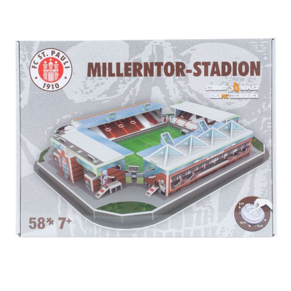 This is the official 3D puzzle of the Millerntor Stadium, the football stadium of St. Pauli. The Millerntor Stadium is located in the district of Sankt Pauli in the German city of Hamburg. The Millerntor Stadium has a capacity of 29,063 spectators. With this puzzle you bring the stadium to life! Ideal for the real FC. St. Pauli fan.