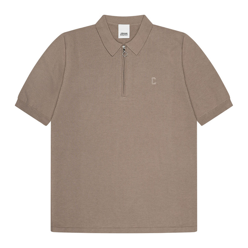 This Johan Cruyff knitted polo in beige is a stylish choice for every fan of sporty fashion. This luxury polo features a comfortable regular fit and is finished with a ribbed collar and a zip neckline extending to the chest. The embroidered Johan Cruyff logo on the left chest highlights the exclusive character of this polo shirt, creating a subtle and elegant look. It pairs perfectly with jeans, chinos or sporty outfits and is suitable for both casual and smart occasions.