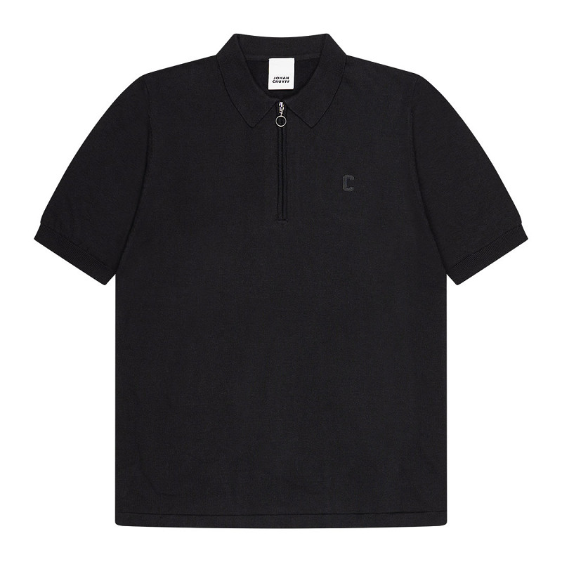 This Johan Cruyff knitted polo in black is a timeless and stylish choice for every fan of sporty fashion. This luxury polo features a comfortable regular fit and is finished with a ribbed collar and a zip neckline extending to the chest. The embroidered Johan Cruyff logo on the left chest highlights the exclusive character of this polo shirt, creating a subtle and elegant look.
